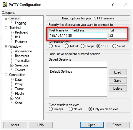 Important: If you change the port, don't forget to allow it in the firewall (more on this below) and specify it when connecting: